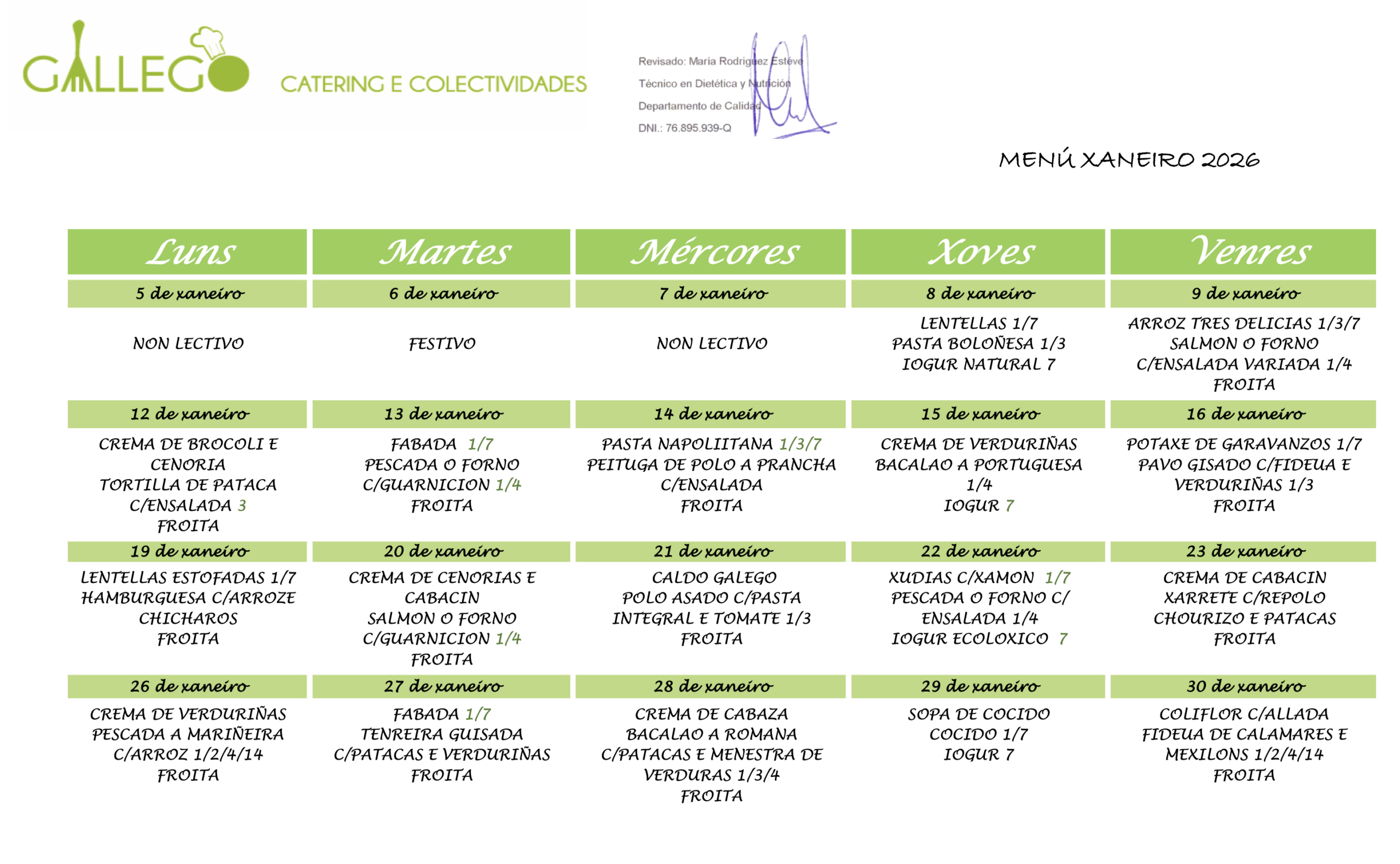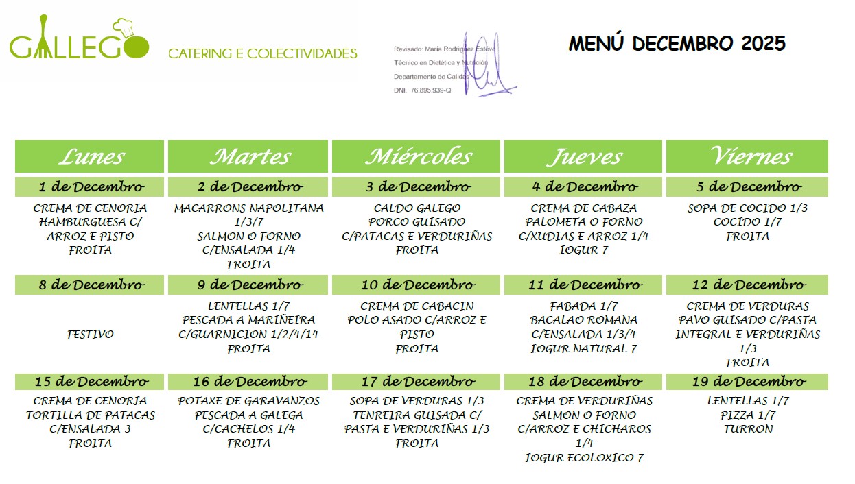 Información sobre alérxenos: 1. Glute; 2. Crustáceos; 3. Ovo; 4. Peixe; 5. Cacahuetes; 6. Soia; 7. Lácteos; 8. Froitos secos; 9. Apio; 10. Mostaza; 11. Sésamo; 12. Sulfitos; 13. Altramuz; 14. Moluscos.