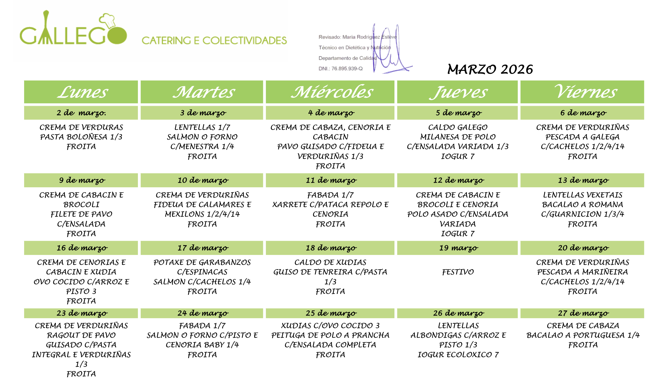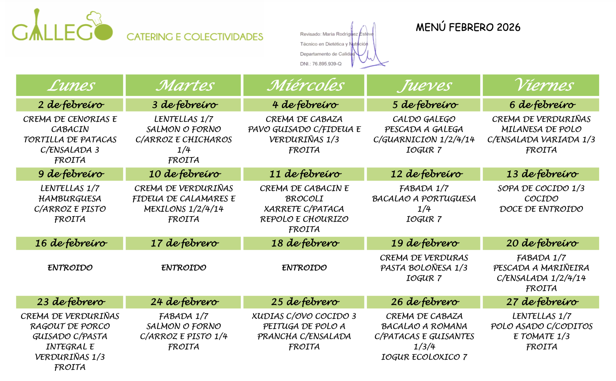 Menú comedor